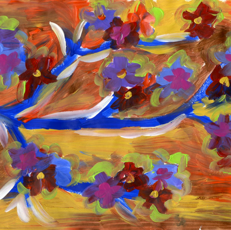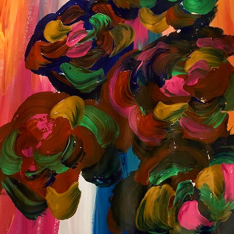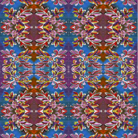 Her nascent passion for painting has led her down the rabbit hole of experimenting with ornate, eclectic images, textures, patterns and materials.